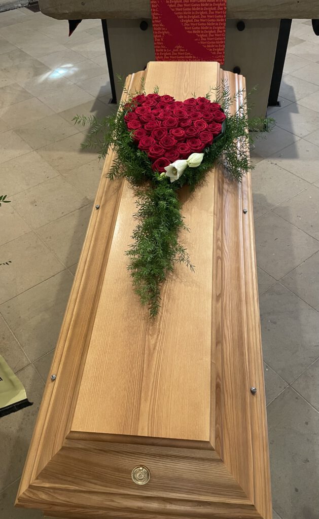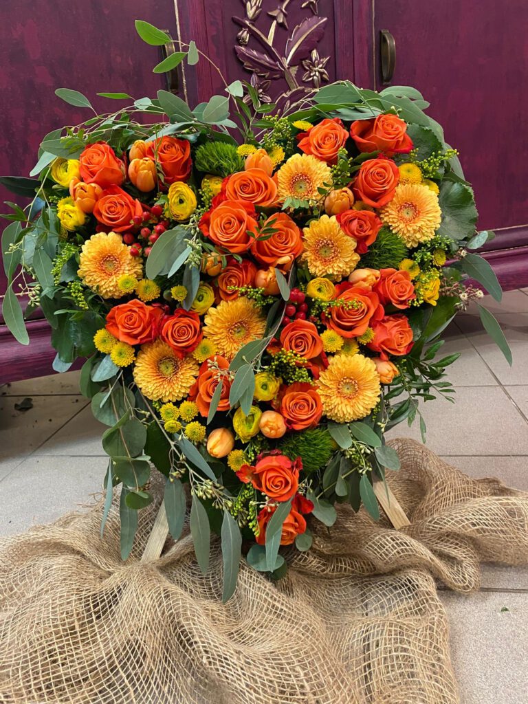 Grabschmuck, Sargauflagen, Trauerkränze, Blüten zur Mitgabe, persönliche Wünsche